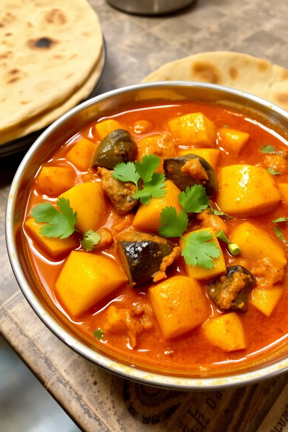 Authentic Brinjal & Potato Recipe- Indian Kadai Masala Style