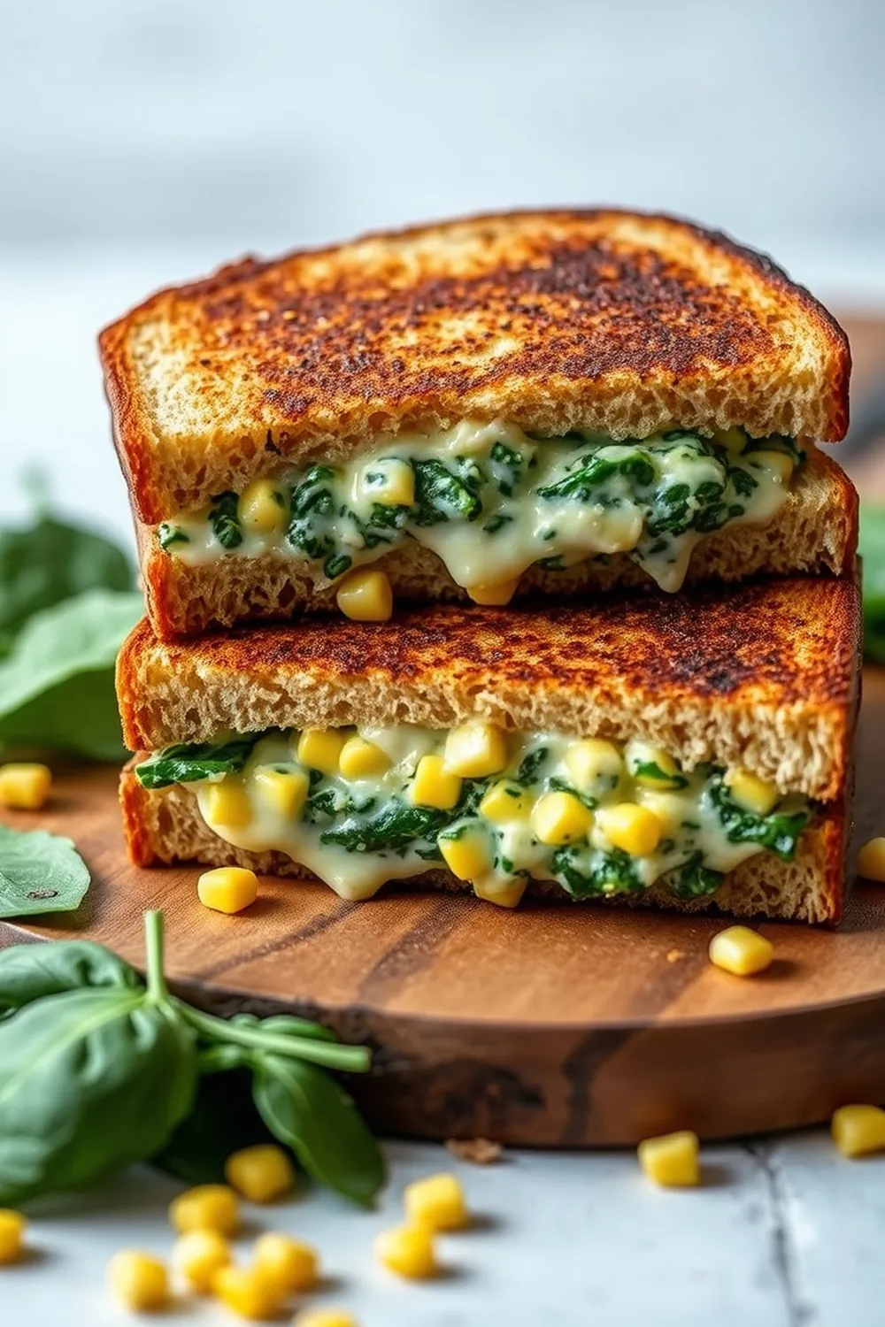 Spinach Corn Toast Sandwich Recipe – Easy Garlic Butter Grill