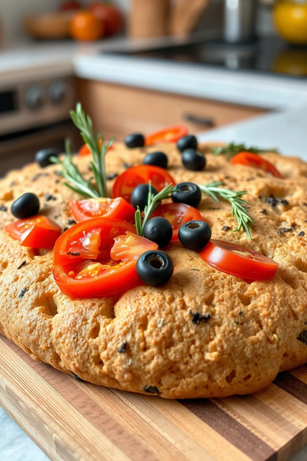 Whole Wheat Focaccia Bread Recipe – Rosemary, Tomato & Olive