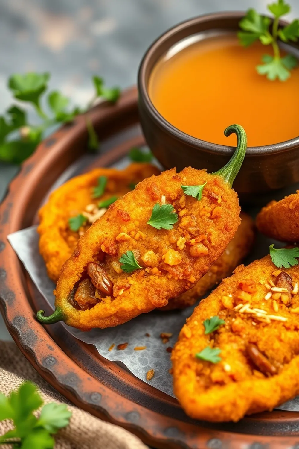 Spicy Green Chilli Bajji Recipe – Stuffed Indian Fried Chillies