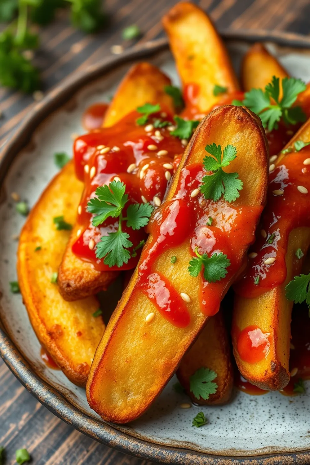 Spicy Potato Fry Recipe – Sesame Oil & Soy Sauce Indian Style