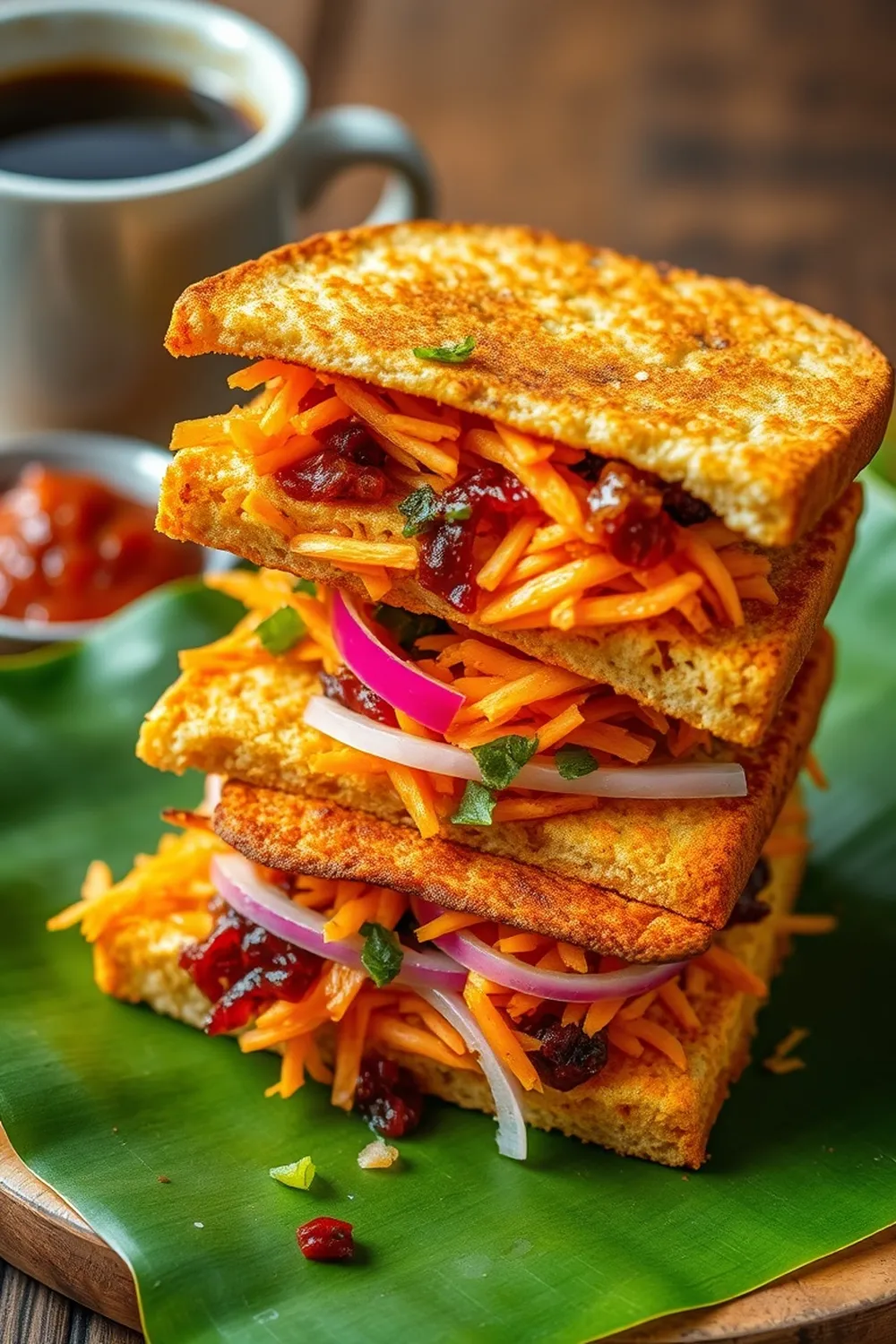 Thattuvadai Sandwich Recipe- Green & Red Chutney Vegetable Filling