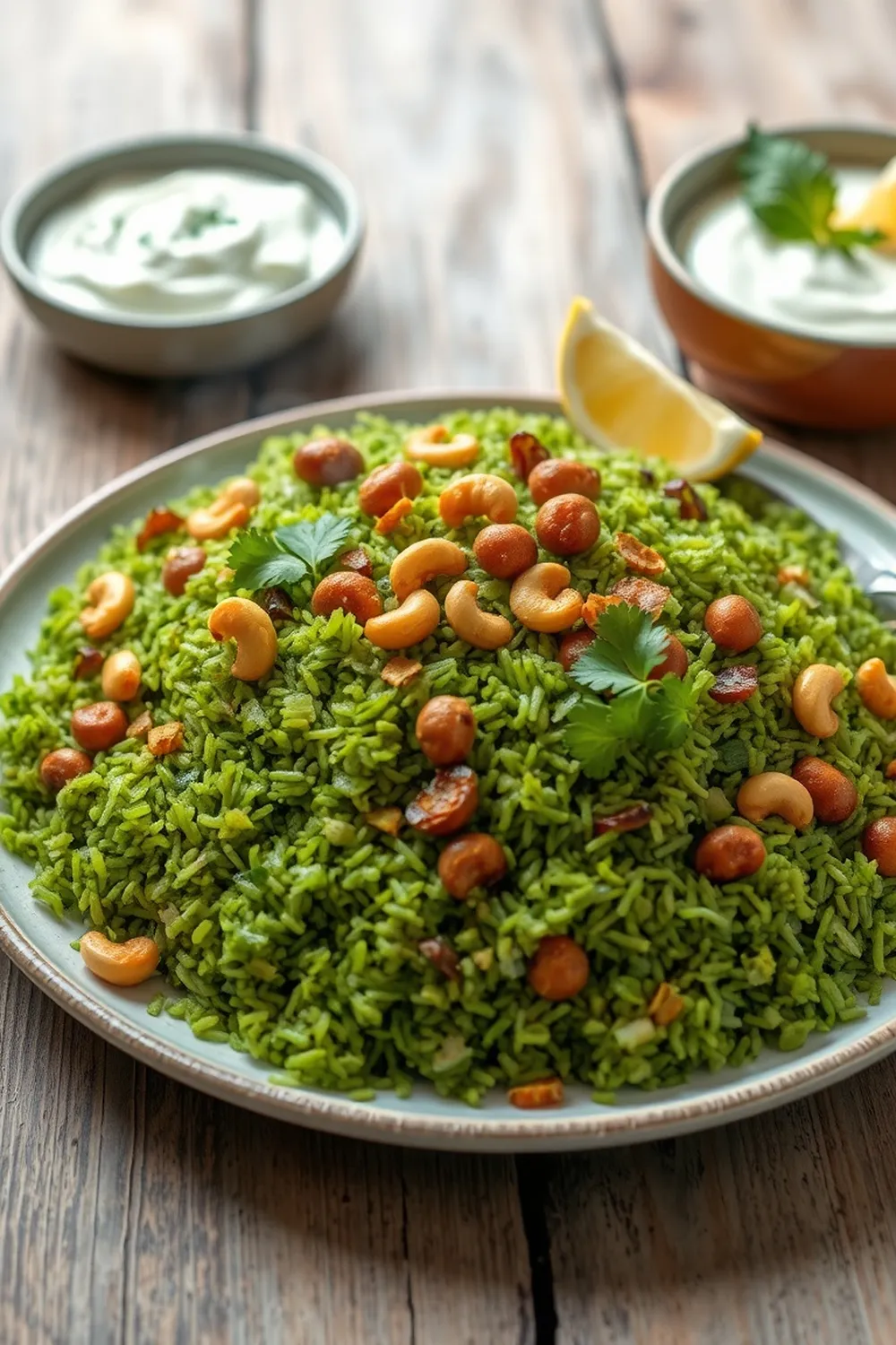 Spinach Rice Recipe- Authentic Indian Palak Chawal with Cashews