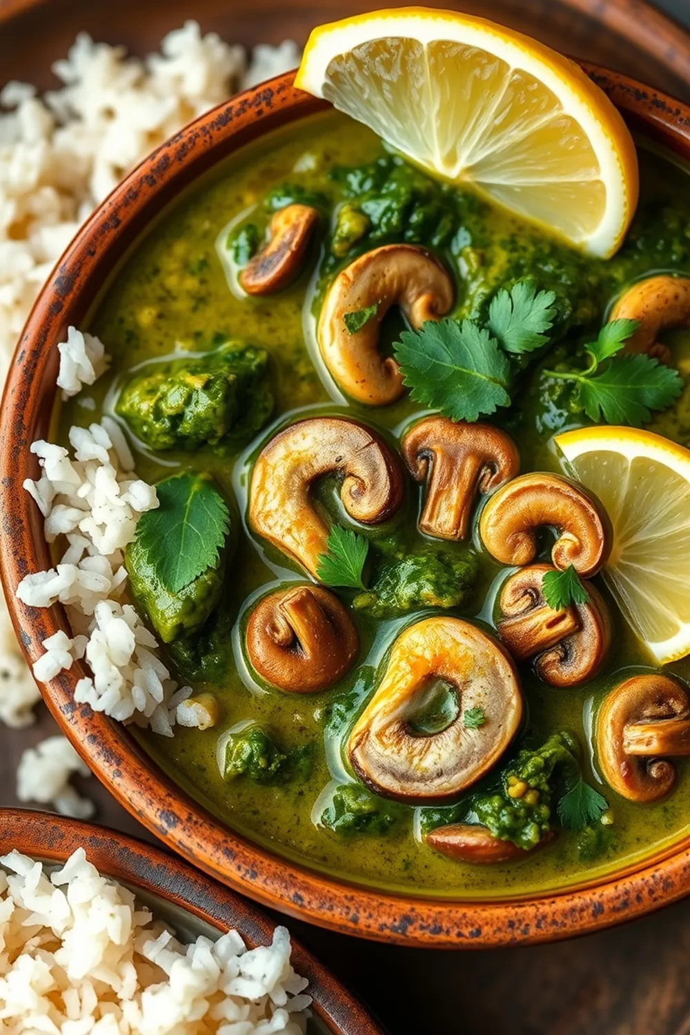 Spinach Mushroom Curry Recipe – Cashew Cream & Instant Pot Indian Dish
