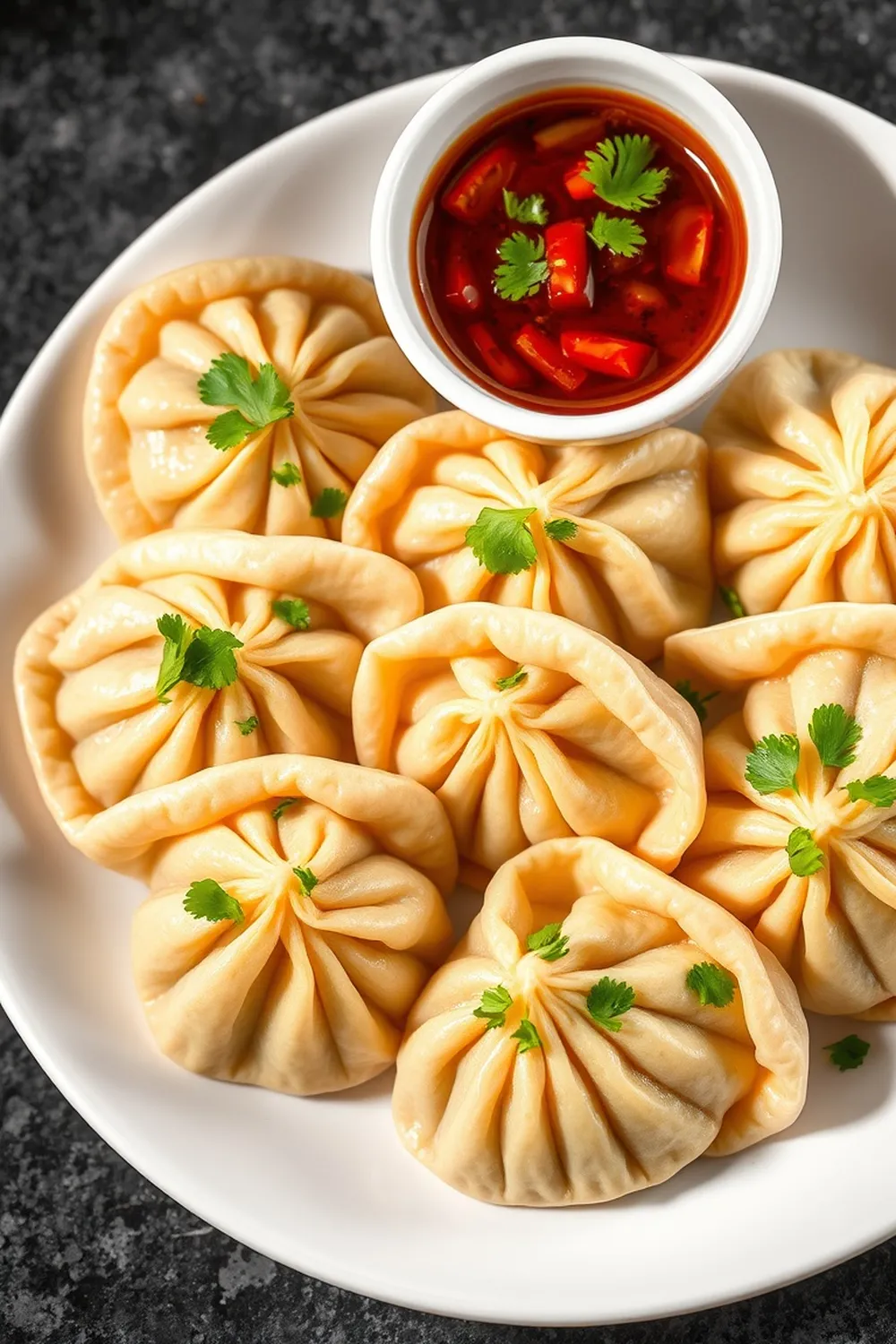 Momos Recipe- Steamed or Fried, with Garlic Chutney & Veggie Filling