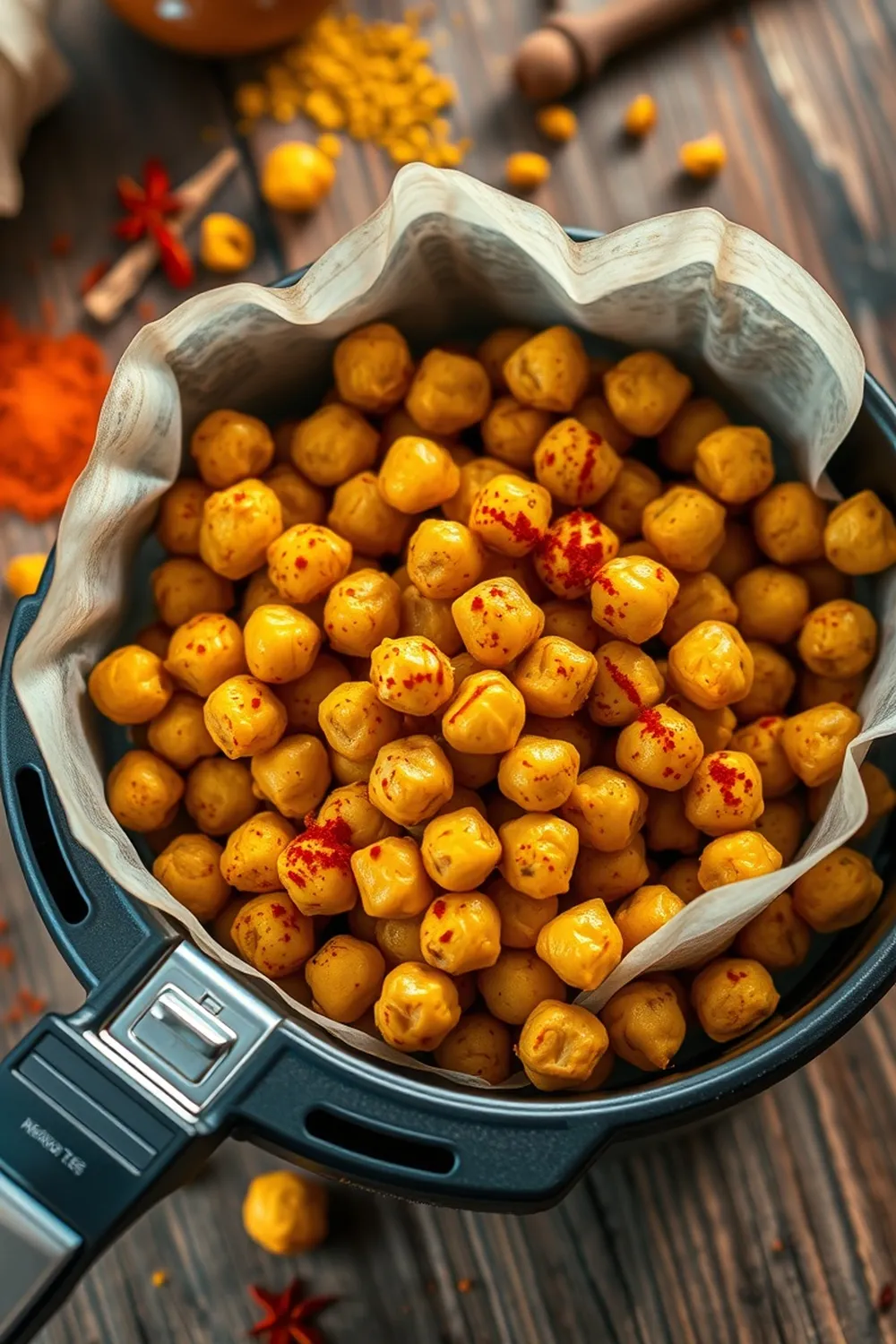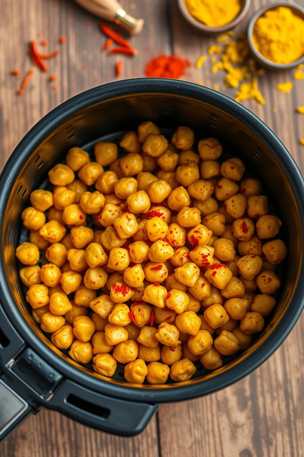 - What type of chickpeas work best for this recipe? Kabuli chana (white chickpeas) are ideal because of their size and texture. They get wonderfully crispy in the air fryer.
