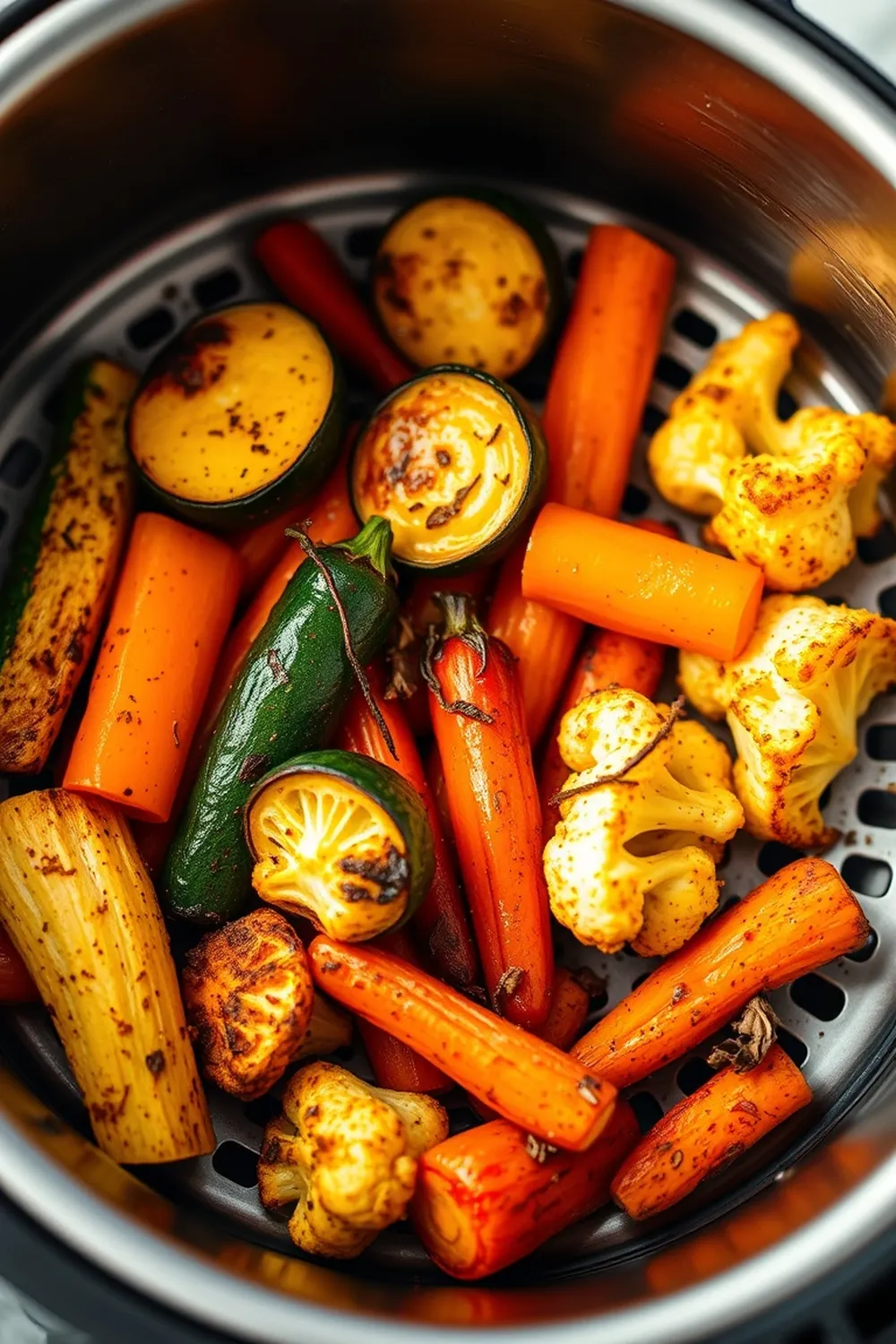 - Preheating is Important: A preheated air fryer ensures the veggies start crisping immediately.