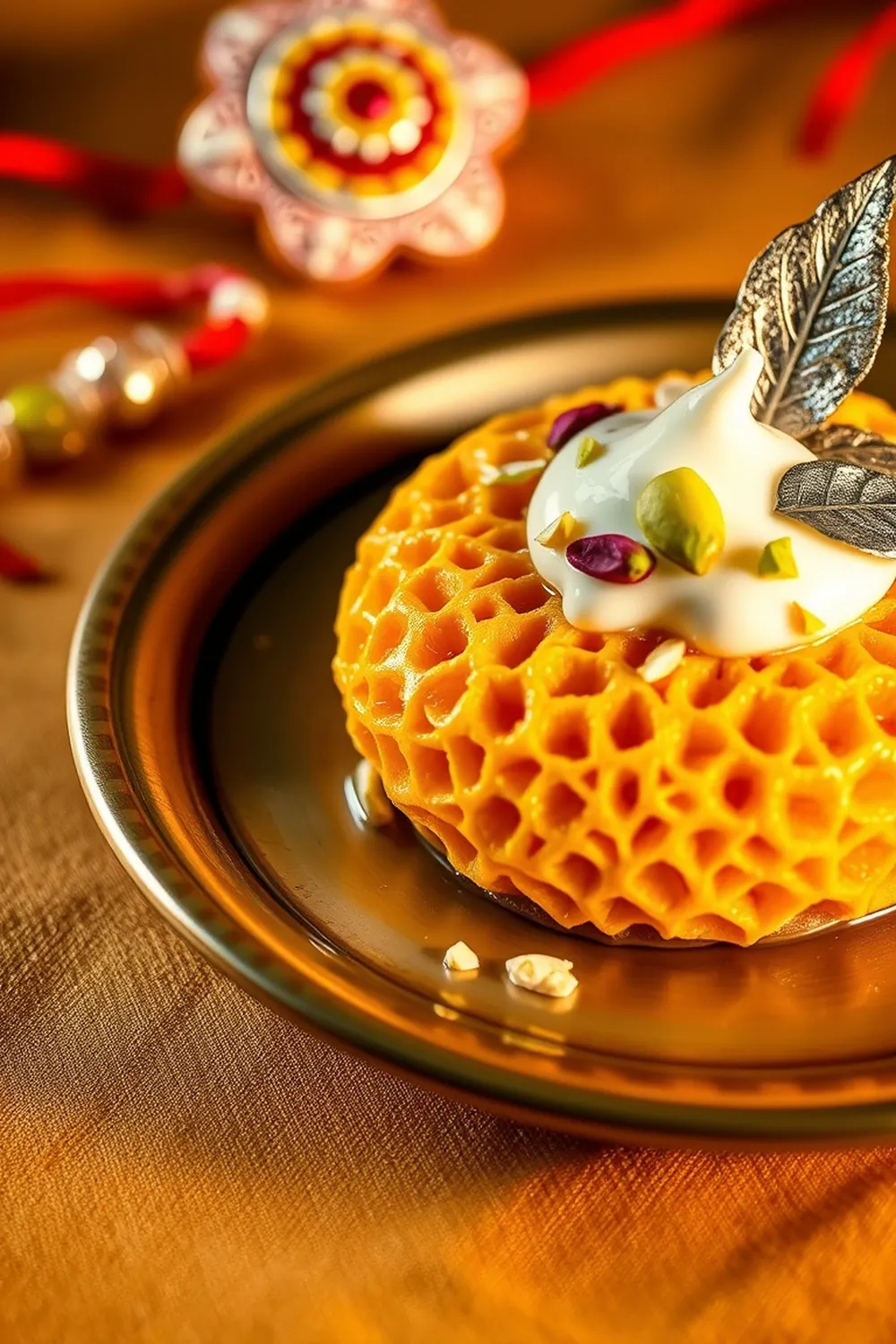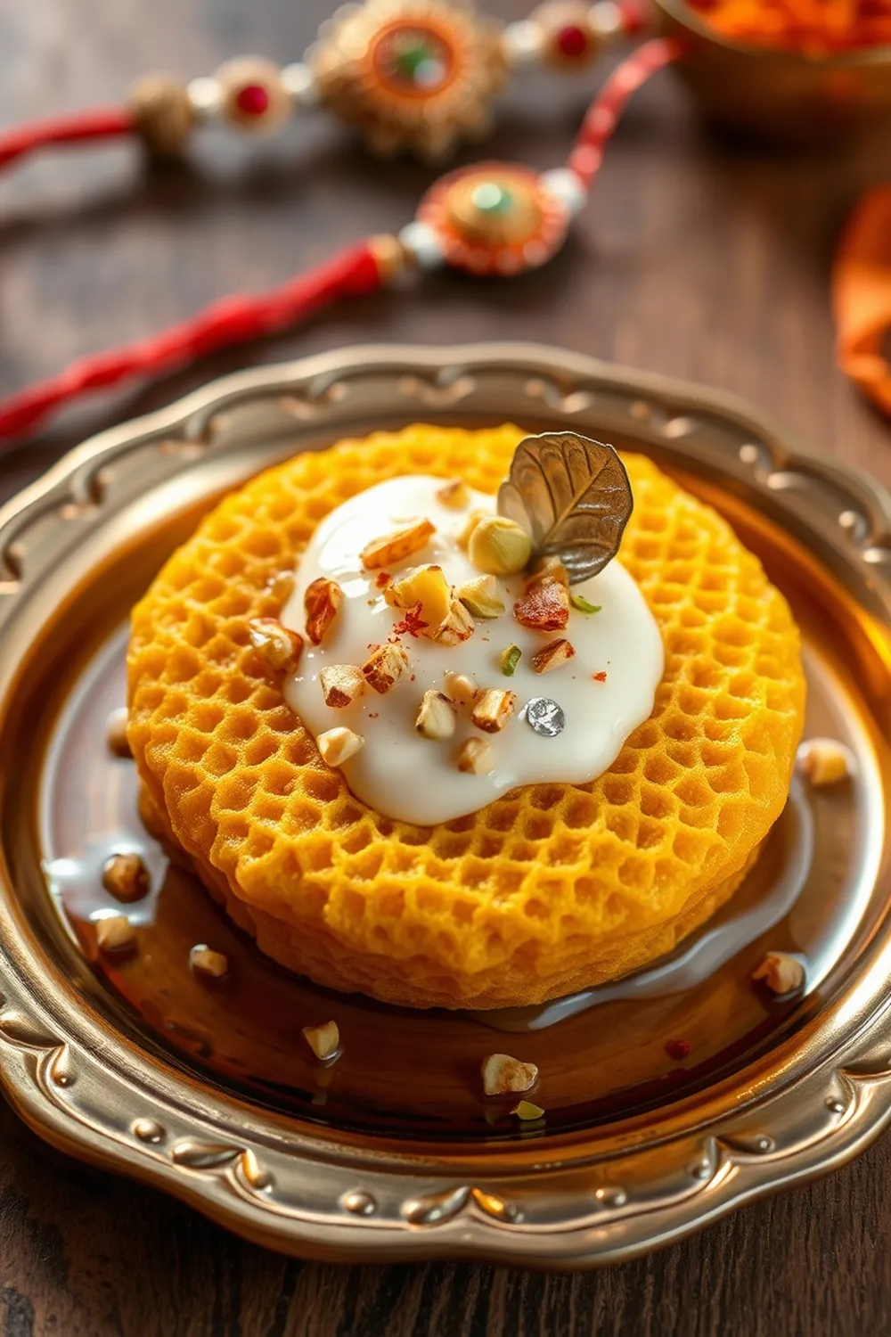 Authentic Ghevar Recipe – Saffron Rabri & Honeycomb Delight