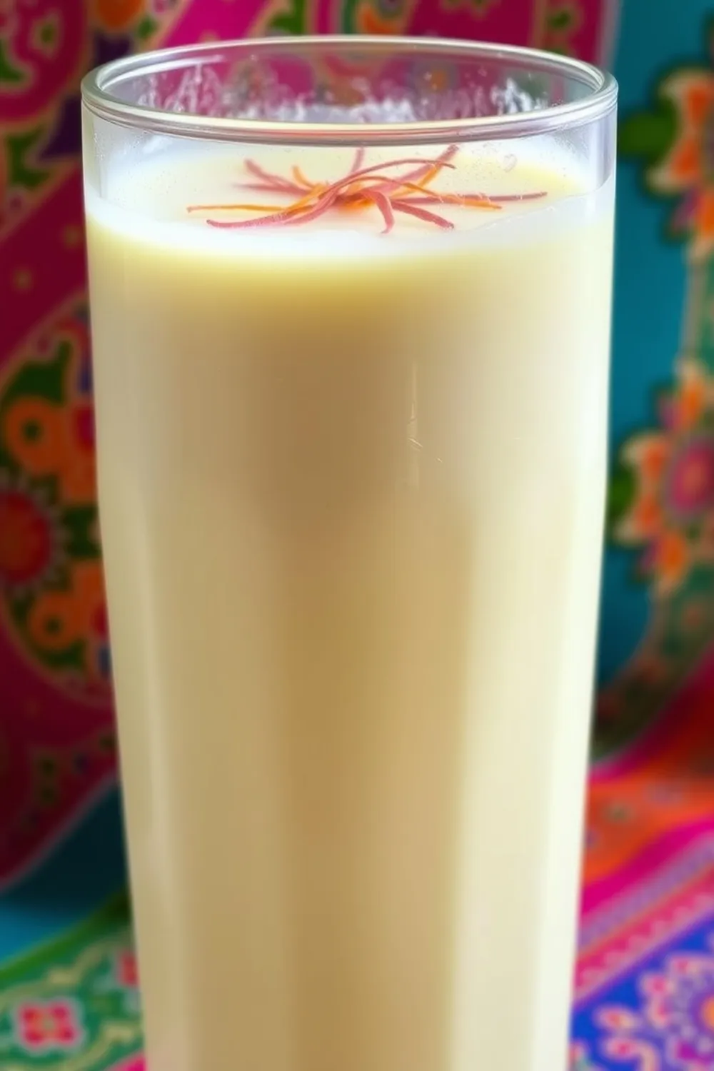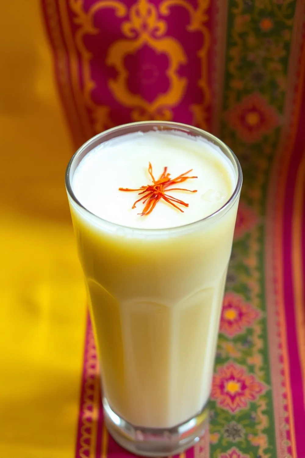 - Finally, pour the lassi into tall glasses. Garnish with a few strands of saffron for a beautiful touch (and a little extra flavor!). Serve immediately and enjoy!