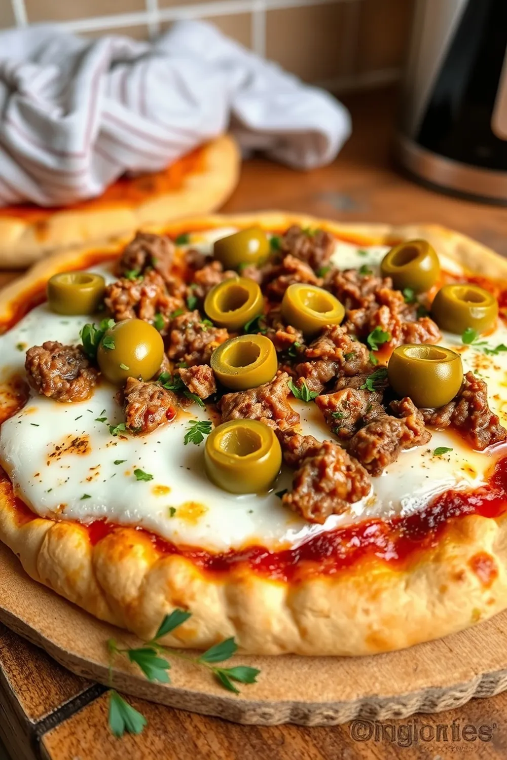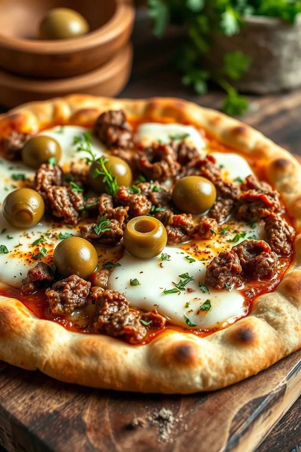 Beef Pita Recipe – Spiced Minced Beef with Olives & Mozzarella
