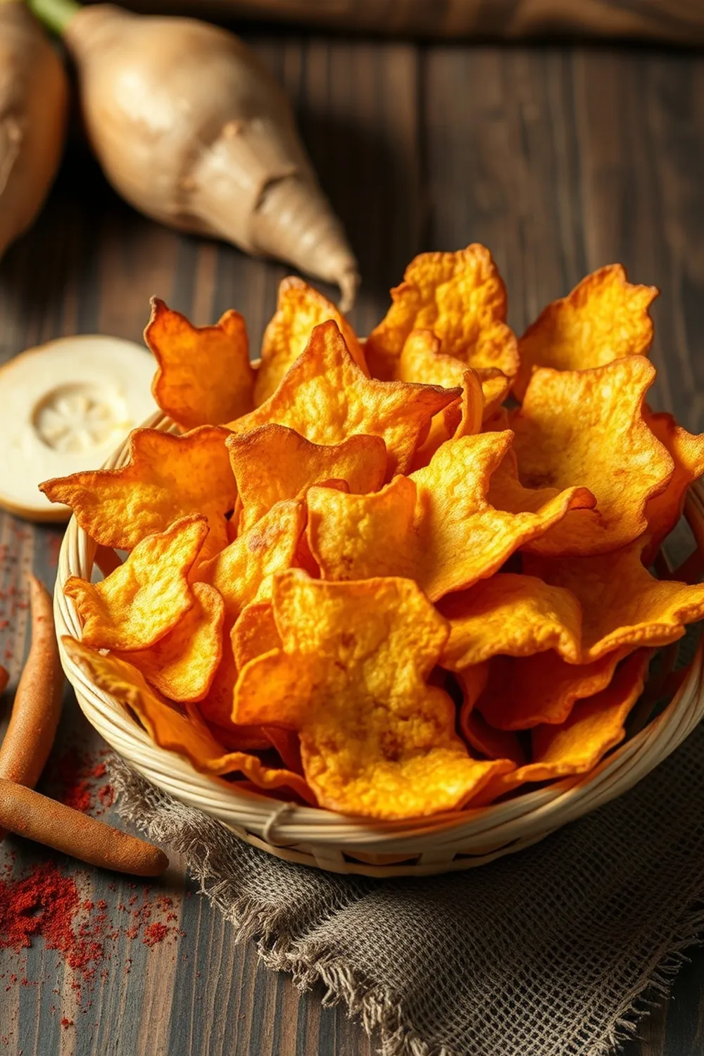 These aren’t just any chips. They’re a delightful blend of textures – perfectly crisp on the outside, soft and slightly chewy on the inside. Plus, they’re naturally gluten-free and can easily be made vegan. They’re a fun way to explore a different root vegetable and impress your friends and family with a unique, flavorful snack. Trust me, once you try these, you’ll be hooked!