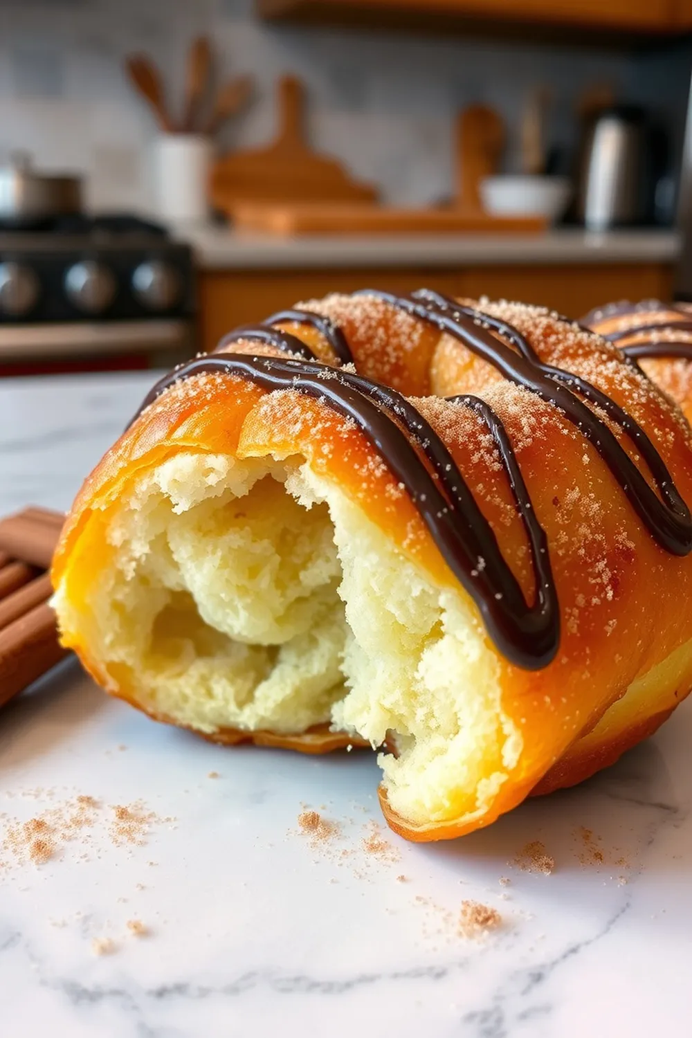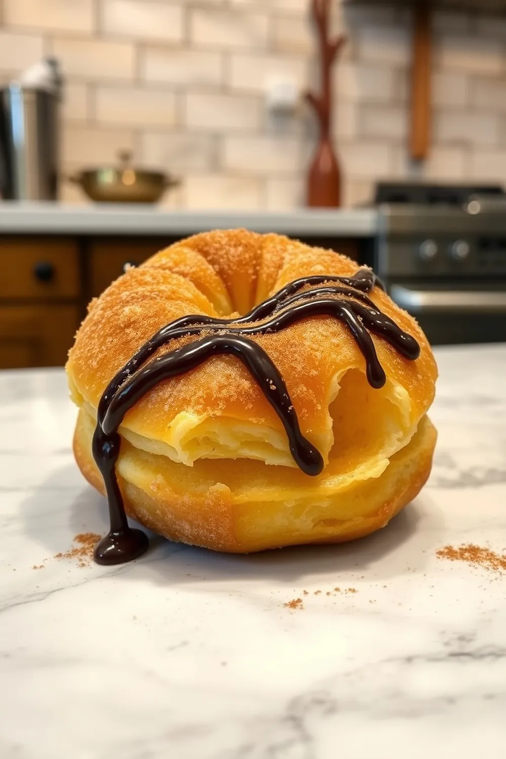 - Coat warm crouukronuts in cinnamon sugar or drizzle with chocolate glaze. Serve fresh.