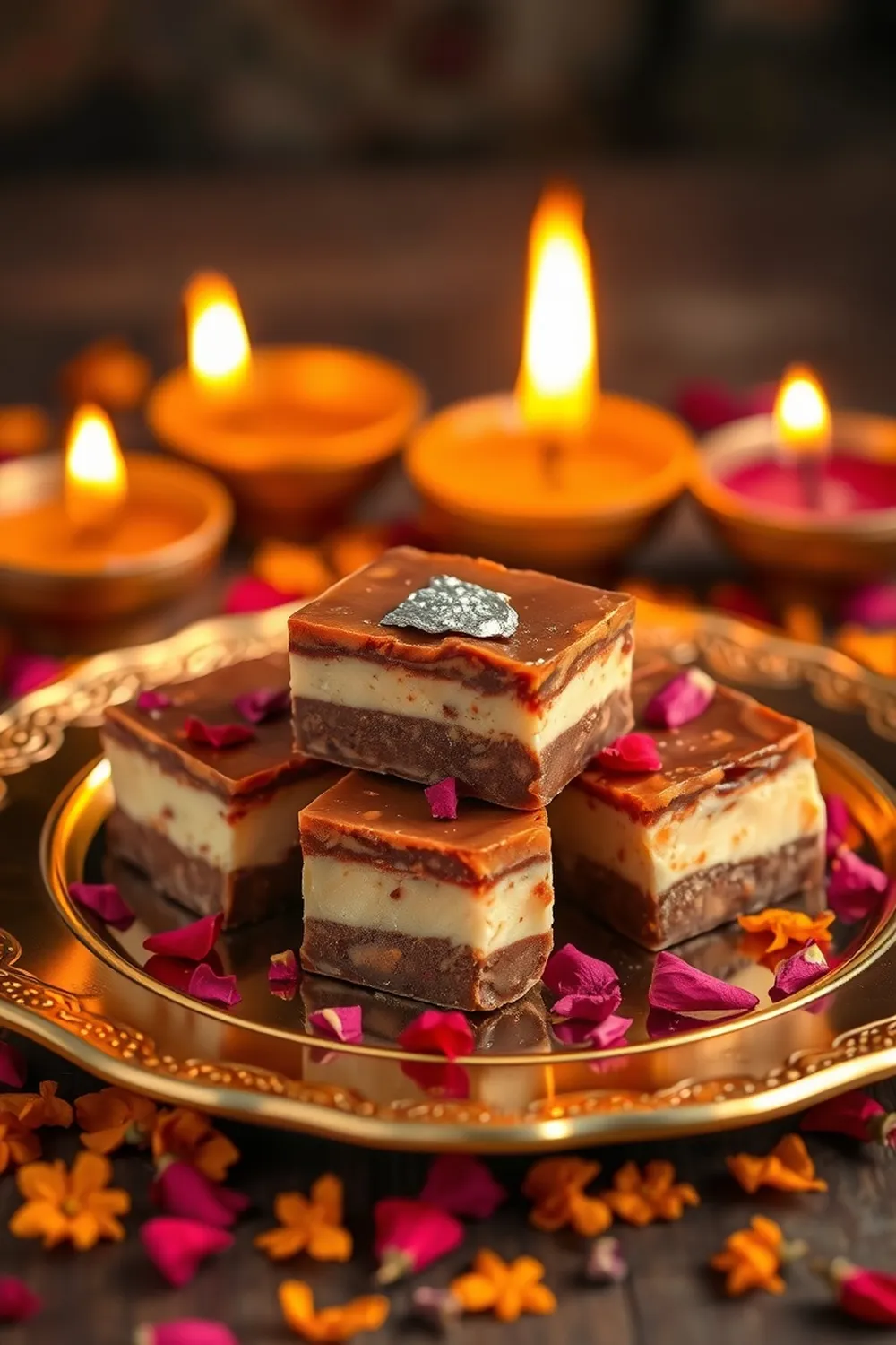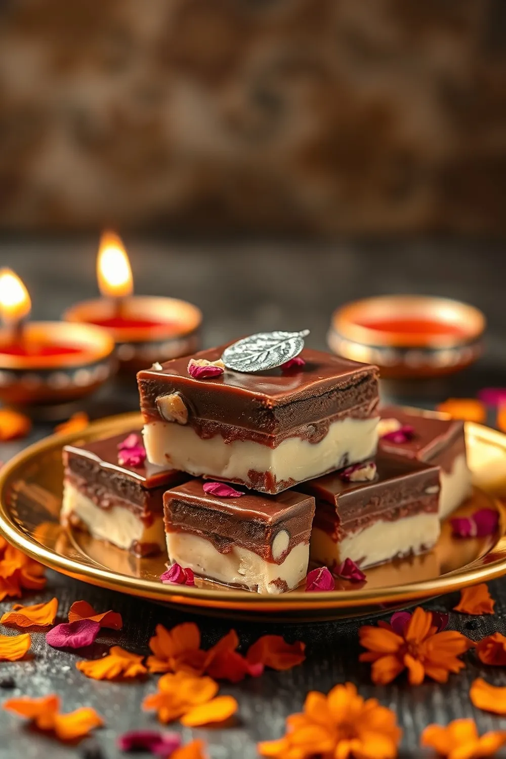 For Diwali, I like to decorate the burfi with edible silver leaf (vark). For Holi, you could add a tiny bit of food coloring to the chocolate layer for a festive touch.