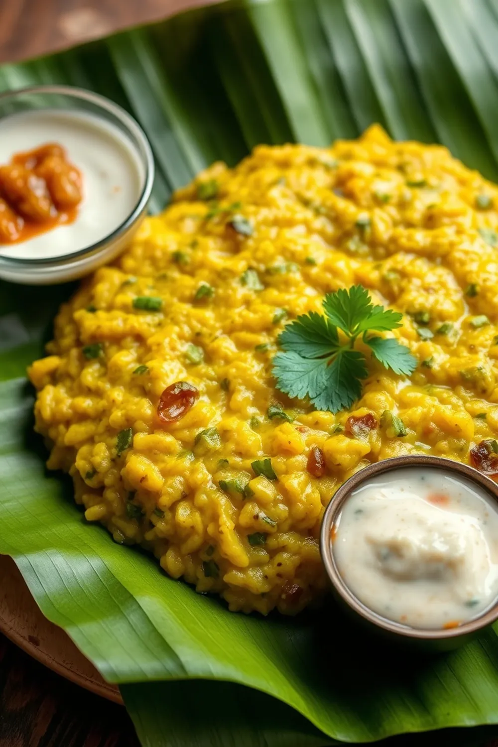 • Fluff gently, garnish with coriander leaves. Serve hot with chutney or pickle.