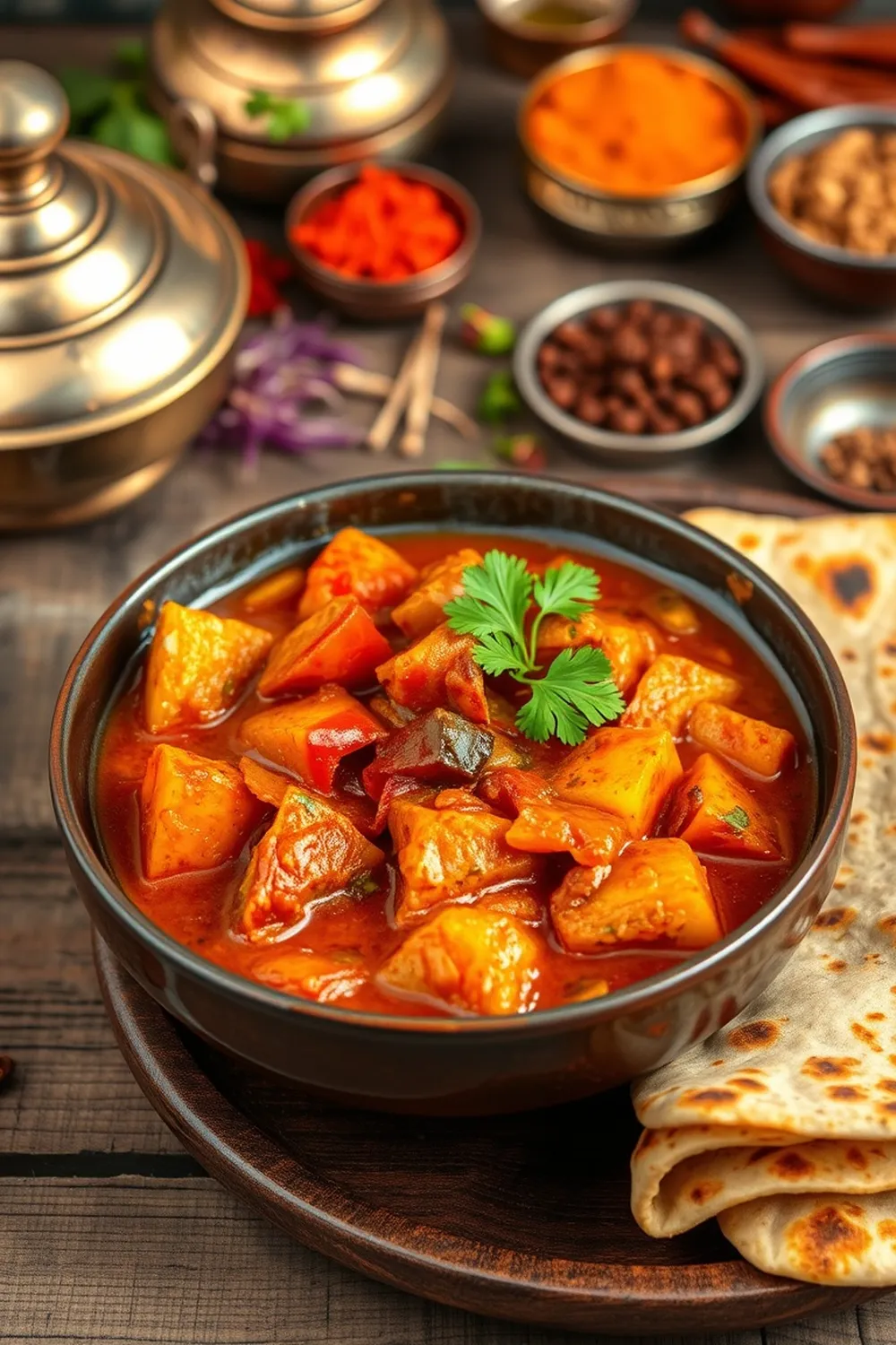 Kolhapuri Vegetable is best served hot with roti, naan, or even steamed rice. A side of raita (yogurt dip) can help cool down the palate.