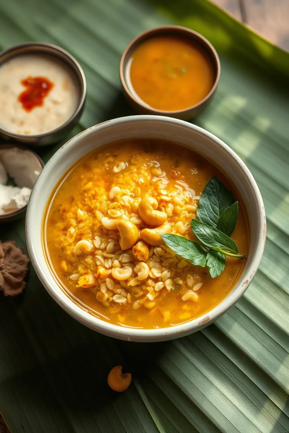 - Now, for the crunchy bits! Fry the 5 cashews in 2 teaspoons of ghee until they turn a lovely golden brown. Keep an eye on them – they burn quickly! Set these aside too.
