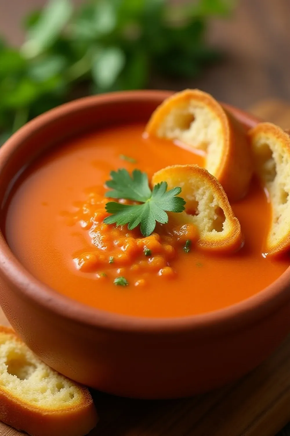 - Serve the soup hot, garnished with those golden croutons, a sprinkle of fresh cilantro, and a generous grating of vegan Parmesan.