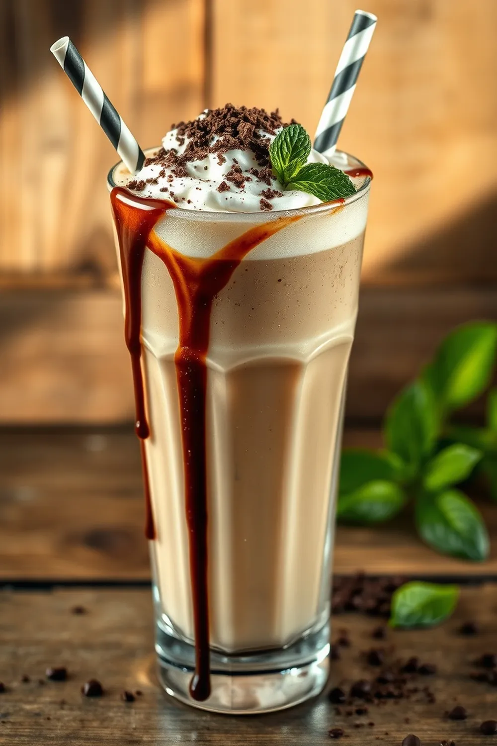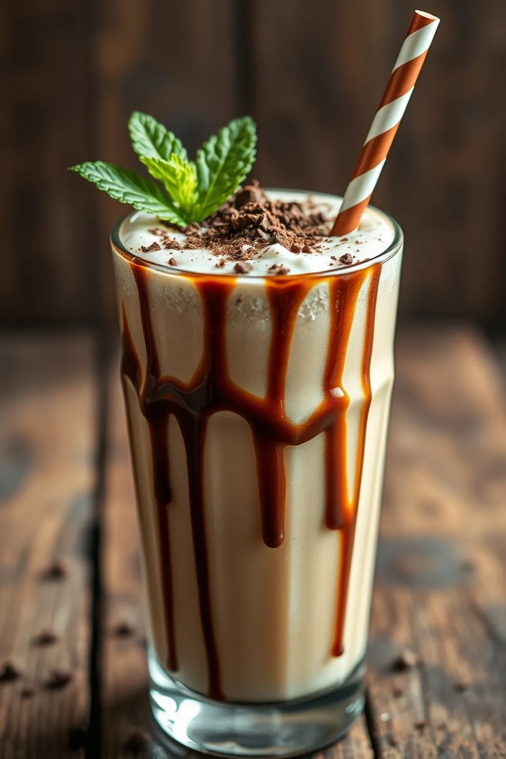 - Drizzle chocolate syrup around the inner walls of serving glasses for decoration.